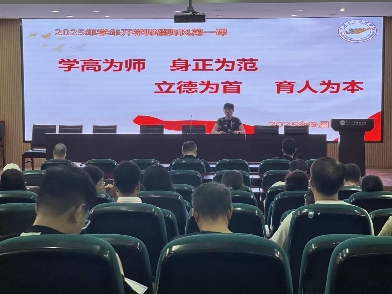 新学期全院教职工大会暨师德师风专题教育会议在学院二楼报告厅隆重举行。学院领导班子成员及全体教职工齐聚一堂,共同开启新学期的新篇章。会议由学院党委书记童莹娟主持。