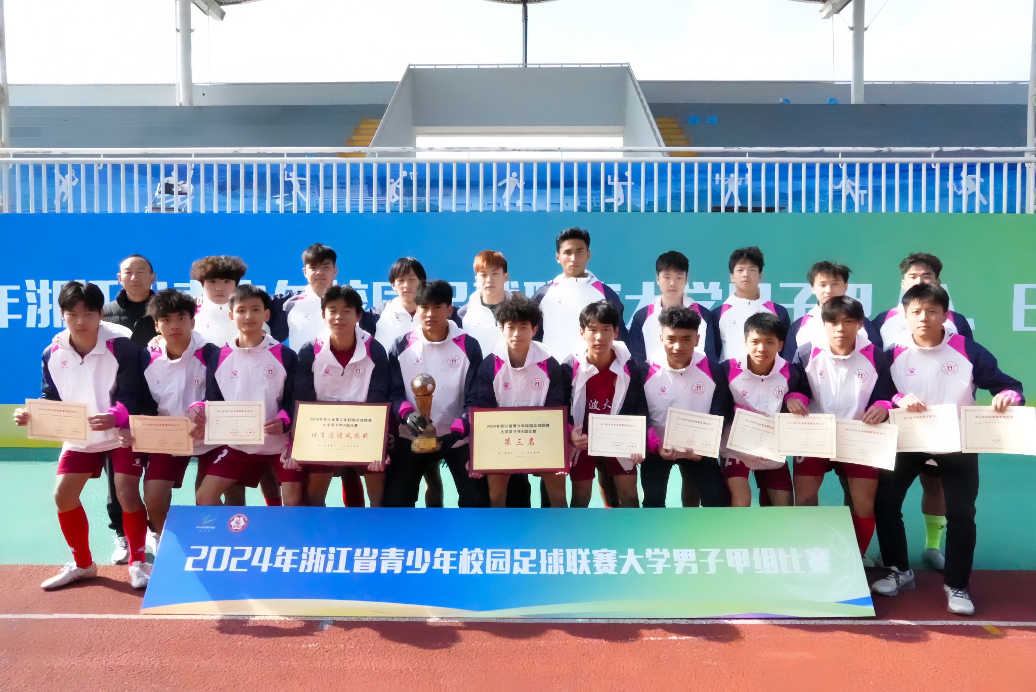 2024年浙江省青少年校园足球联赛大学男子甲(A)组落幕,我校足球队获得季军