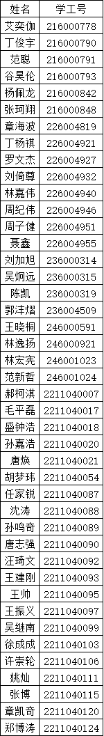 依据学院《关于落实学生寝室“晚归不归”网格化管理的通知》、学校反馈学生进出寝室门禁数据,经过学生本人申诉、学院核实,现就本学期(12月1日—12月31日)未按要求进行申请报备的“晚归不归”累计三次及以上的学生进行通报批评。希望同学们引以为戒,严格遵守学校学院各类规定。以下名单按学号排序。