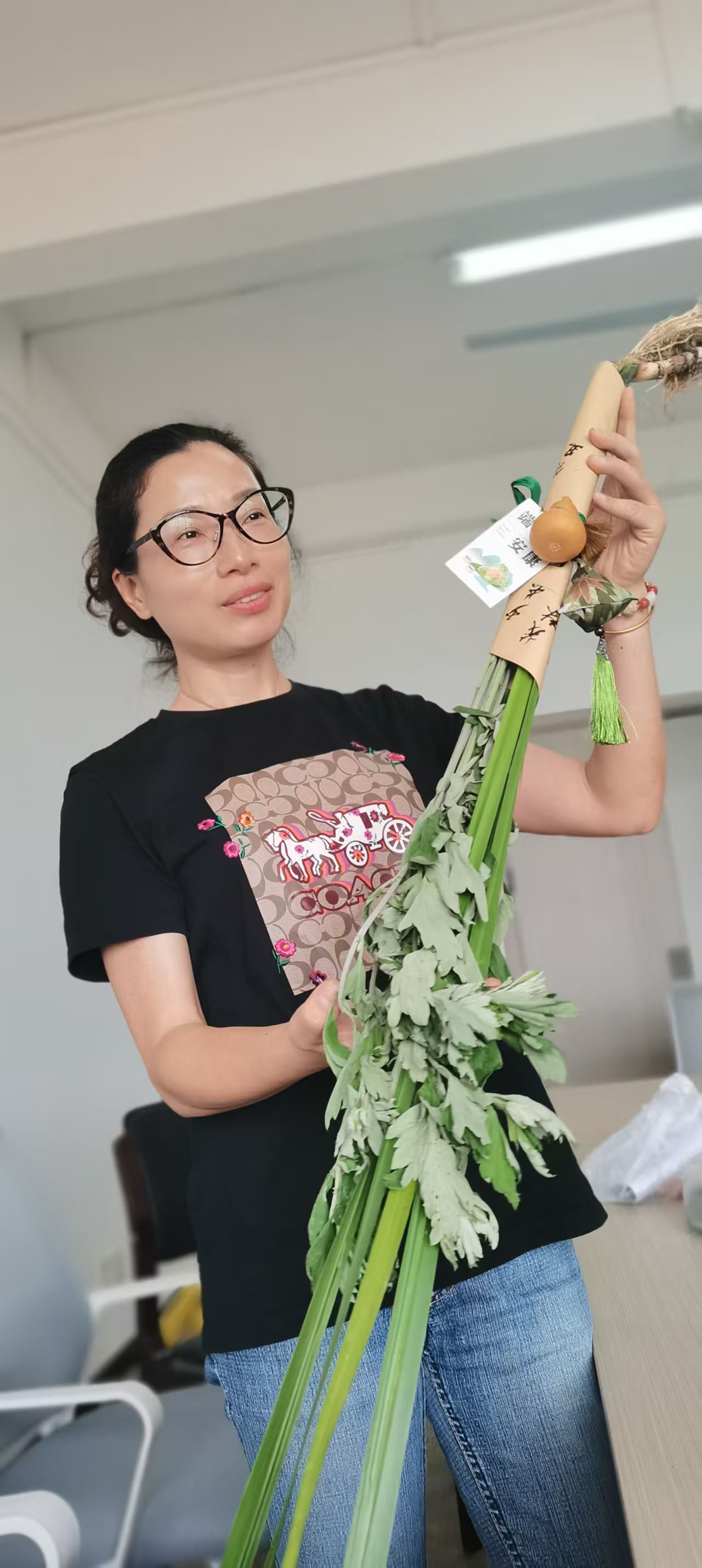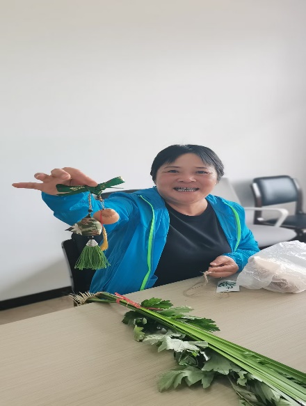 活动现场,分工会提前准备了新鲜艾草、彩绳、香囊布料等材料,邀请有经验的老师讲解艾草文化与香囊制作技巧。“端午挂艾草有驱邪纳福的寓意,香囊里的艾草还能安神驱蚊……”老师们一边裁剪布料、填充艾草,一边分享民俗知识。教职工们兴致盎然,纷纷动手尝试,揉捻艾草、缝制布袋、缠绕彩绳,指尖翻飞间,一个个造型别致、香气四溢的艾草香囊和花束逐渐成型。